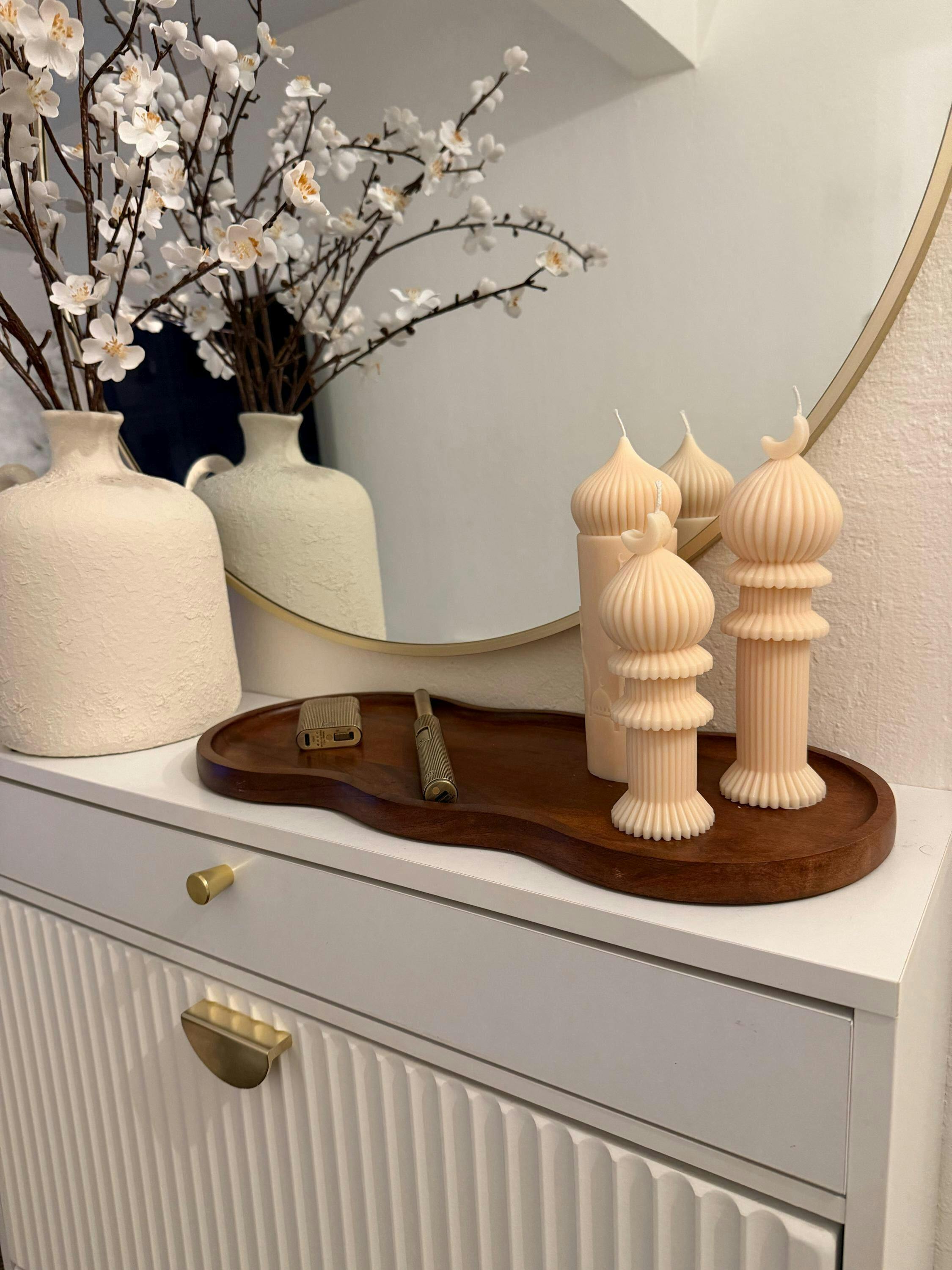 • We recommend keeping a plate underneath the scluptured candle to prevent wax from coming in contact with surface.